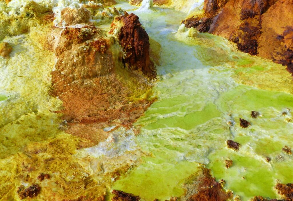 - Žlté a zelené sírne bazény,